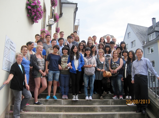 Die freien Tage in den Familien wurden hingegen auf unterschiedlichste Weise zur Erfahrung der deutschen Kultur für unsere chinesischen Freunde. Während manche Familien einen Einkaufsbummel samt Besteigung des Kölner Doms vornahmen, fuhren andere nach Koblenz zum Deutschen Eck und zur Festung Ehrenbreitstein oder unternahmen Spaziergänge und Fahrradtouren durch die Freudenberger Altstadt und Umgebung. Doch allesamt waren die Aktivitäten immer im familiären Kreis mit einer kulinarischen Erfahrung der deutschen Küche verbunden, welche die chinesischen Partner zu schätzen lernten.
